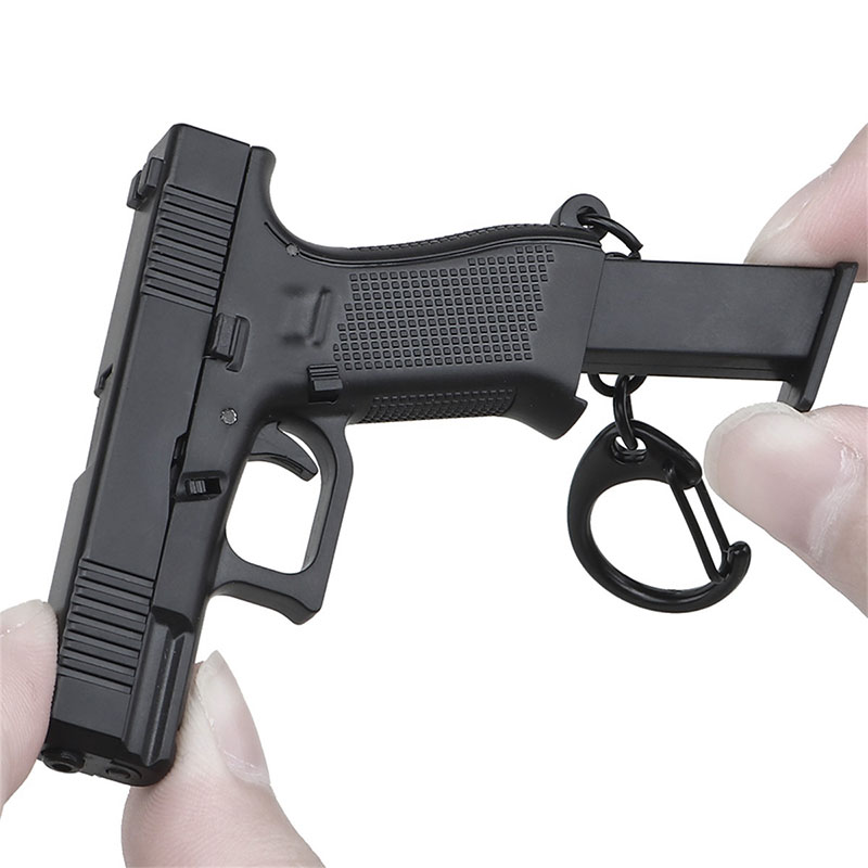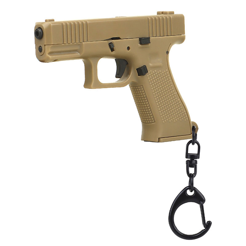 フルサイズのグリップフレームとコンパクトスライドを融合させたクロスオーバーピストル、 グロック45の1/4スケールキーホルダー。