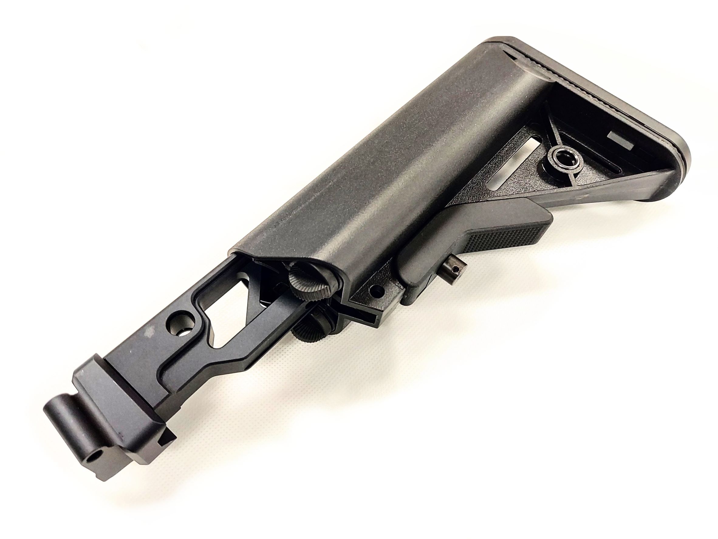 LCT/GHKのサイドフォールディングストックAK対応のJMAC ST-6タイプAK-M4フォールディングストックアダプター。 AKにM4/AR用のストックを装着可能となります。