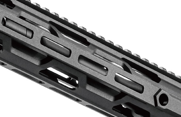 レシーバ―、ストックは強化樹脂製で、ハンドガードはアルミニウム合金製と昨今求められる軽量化と剛性の二律背反を実現しています。