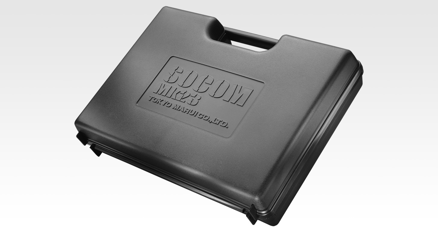 ファンの中では伝説の名銃と呼ばれるソーコム マーク23の初期型を、サイレンサーやL.A.M.(=ライト・アタッチメント・モジュール)とともにガスガンのフルセットとしてラインナップ。これら全てをハードコンテナ・ガンケースに収納し、精鋭達に納品される姿をイメージしたスペシャルなセットとなっています。