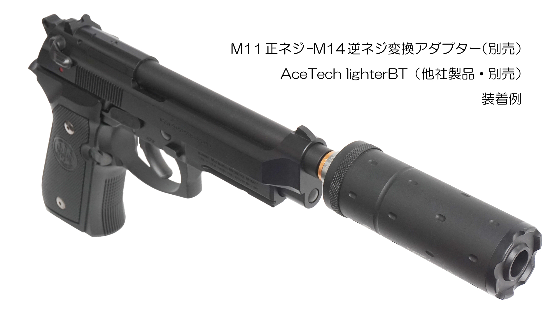 また11mm→14mm変換アダプターを使えば、14mm仕様のサイレンサーやトレーサーを装着することが可能です。