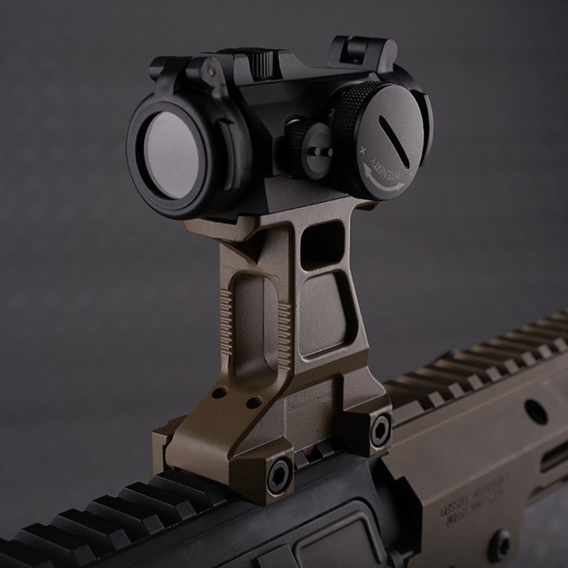 こちらのマウントキットはレプリカでありながらも、実物をリアルに再現した造形で、各メーカーのオプティカルにあわせて、アッパーフレームレールとマウントの接触点から2.91inch(約7.39cm)の高さでドットが保持できるようになっています。