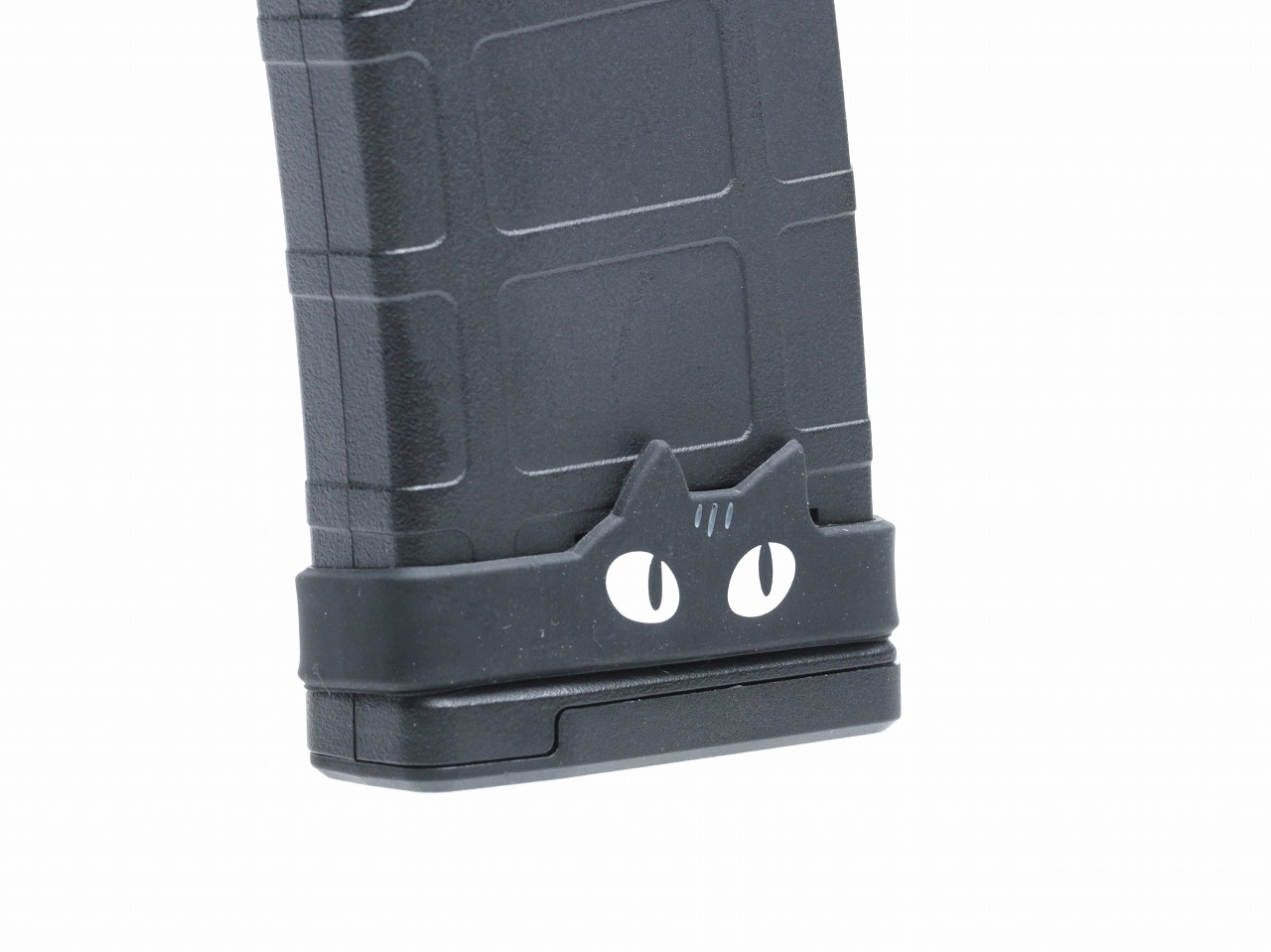 可愛い猫ちゃんマグバンド! マイトリーさんオリジナルデザインの猫のマガジンに取り付けるラバー製のバンドです。 M4系マガジン用となります。 ※ロットによりおでこの柄の色が若干異なることがあります。