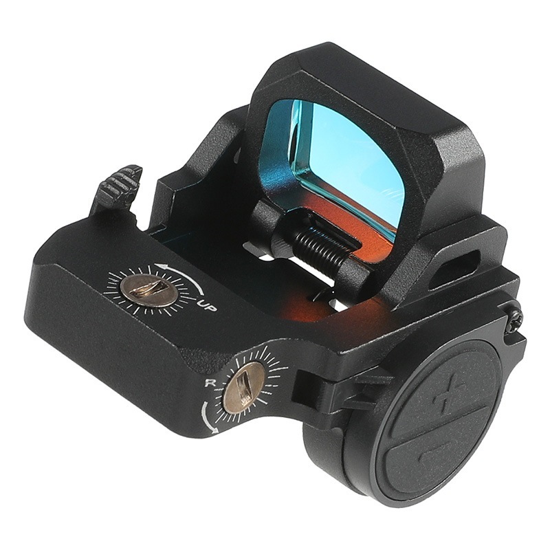 ハンドガンのメインサイトとして、持ち運び時やホルスターに入れておくときなどはサイトを畳んでおくことで邪魔になりません。 ライフルのバックアップサイトとしても普段は折りたたんでおいて、使用時は本体のレバーを下げるだけでサイトが起き上がるので、即座にサイティングが可能です。