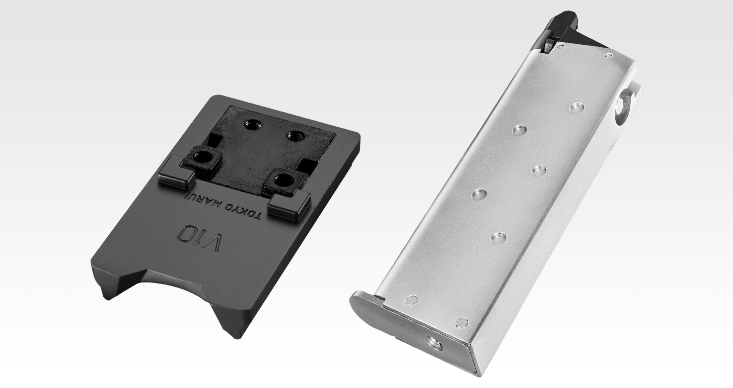 装弾数22発、薄型ながら冷えに強いダイカスト製のマガジンが付属しています。