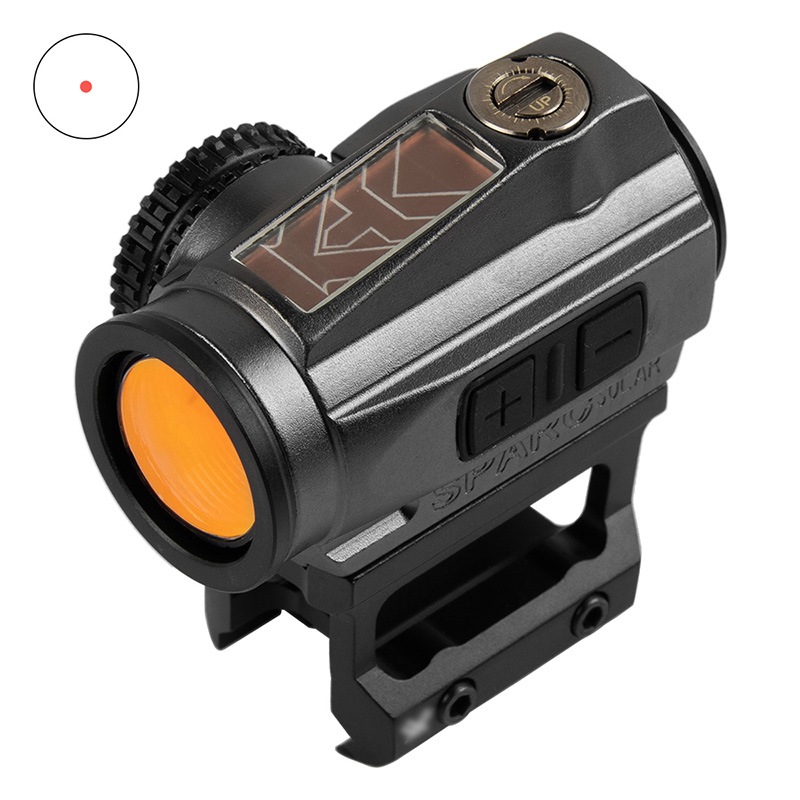 SPARC SOLARタイプレッドドットサイトは、太陽光とバッテリーによりドットを発光させることが可能です。 太陽光により十分なエネルギーが得られない場合は、自動的にバッテリーによる電力供給が行われます。 ドットの輝度は10段階で調整可能なため、照度環境を問わず快適な照準ができます。 日中の明るさの場合は2MOA程度のドットが点灯され、モーション感知機能も搭載されておりストレスなく運用が可能です。