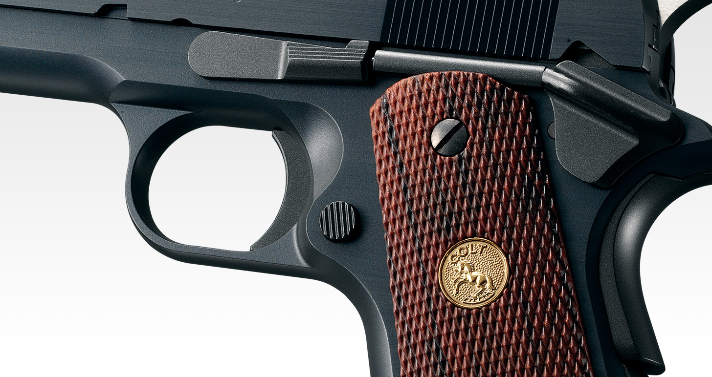 コルト社の「ガバメント」はアメリカ軍に制式採用されてから100年が経つ現在でも第一線で活躍し続けている名銃です。東京マルイではその民間用モデルである「シリーズ'70」をガスブローバックとしてモデルアップ。ブルーフィニッシュとよばれる深い青みをおびた表面加工をエアソフトガンで再現し、シリアルナンバーや刻印、そして各部パーツ形状とグリップの木目感など、シリーズ'70のリアリティを細部まで徹底的に追求した至高のモデルとなっています。