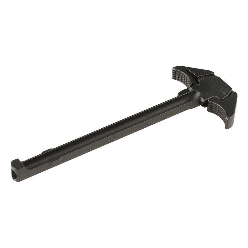 M14のチャージングハンドルに類似したデュアルレバーは、縦横に曲面によるカット、ハンドル表面にはグローブ装着時でも快適な操作をアシストするようチェッカー加工が施されています。