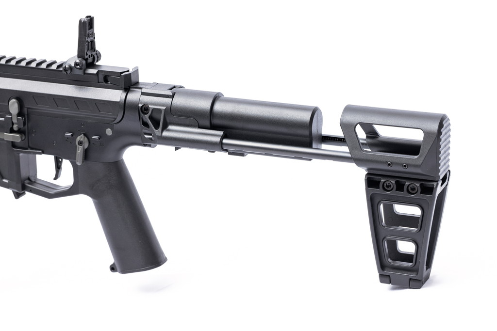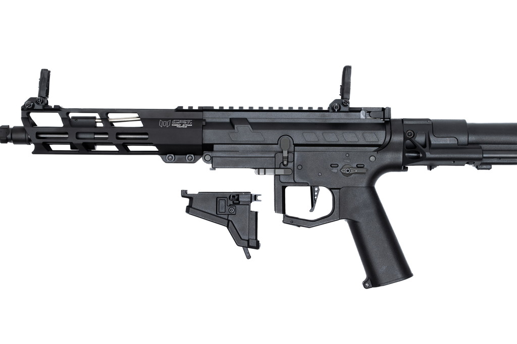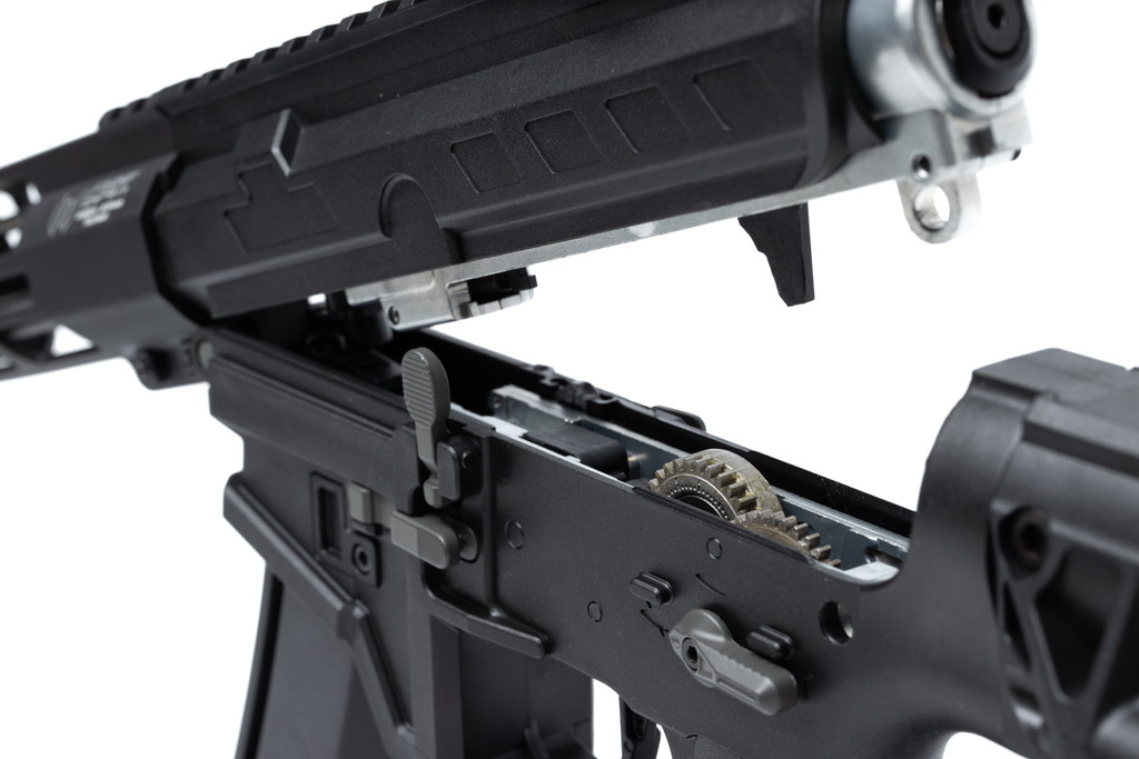 秒間35発以上のフルオートサイクルと、セミオートでは更にHTG製MUGENブラシレスモーター(逆転防止用ワンウェイクラッチ搭載型)を用いることで、電動ガンの駆動感を完全に排除した「超瞬間的」なフィーリングを実現しています。