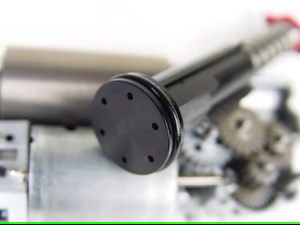 内部カスタムパーツの基本となる部品の一つ、樹脂削り出しで軽量、スムーズワッシャー標準装備でスプリングの性能を効率よくパワーに変換し、エアホールの数を増やし安定したシーリングテンションを確保し効率の良い作動を実現しています。