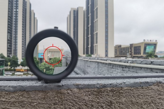 ・ドットサイトの場合、レティクルがにじんで見えることがありますが、多くの場合は乱視や室内での使用が原因です。乱視矯正の上で屋外でご確認ください。