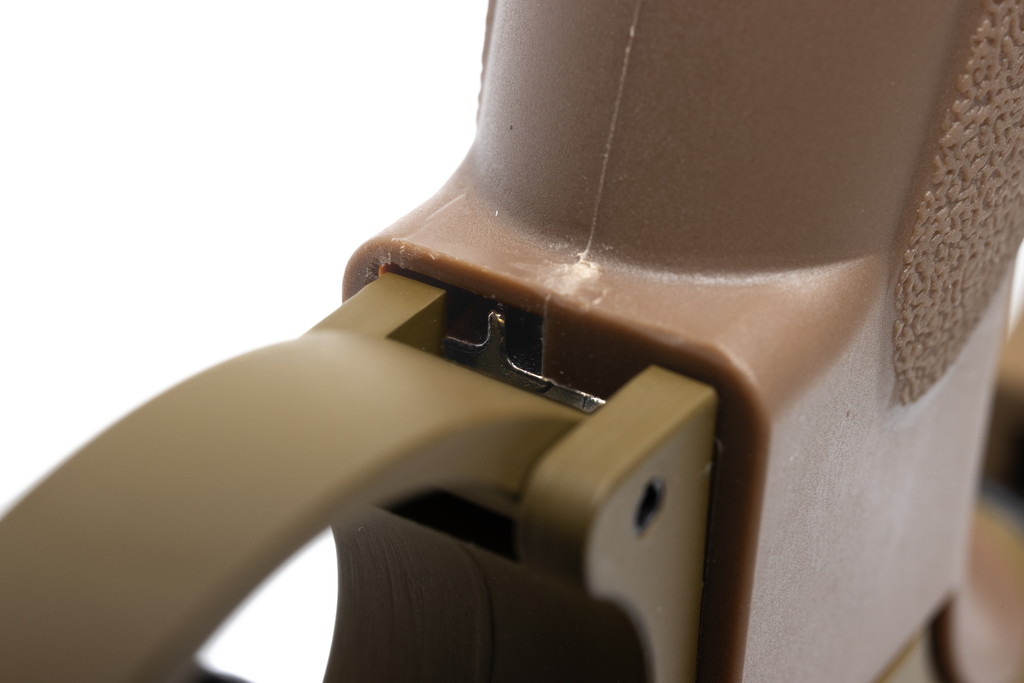 機械式可変プリコッキングとマイクロスイッチ式の相乗効果で、実銃やガスガンのようなクリック感のあるシアートリガーを実現。