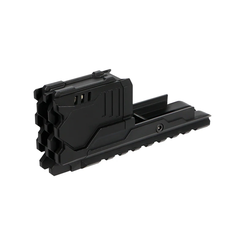 外装のデザインと設計をLAYLAX、トレーサーユニットをACETECH社が手掛けたコラボレーショントレーサーです。組込み済みのACETECH製トレーサーモジュールに搭載されているトレーサー機能(蓄光BB弾を発光させる機能)により、ナイトゲームやインドアフィールドで強みを発揮するのは勿論、射撃に合わせてトレーサー前方に向けて発光するマズルフラッシュ機能も搭載されているため、蓄光BB弾を使用しないシチュエーションでも本物さながらの迫力を楽しむことが出来ます。また、グロックの直線的なデザインに合わせて設計した特徴的なストライクフェイスが、グロックをより攻撃的なスタイルに変貌させます。取付けはねじ一本で行える構造を採用。簡単に脱着する事が可能です。