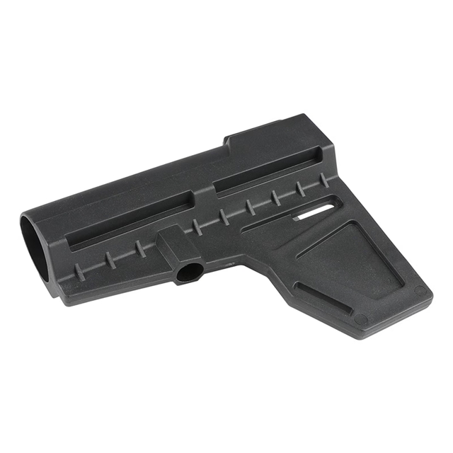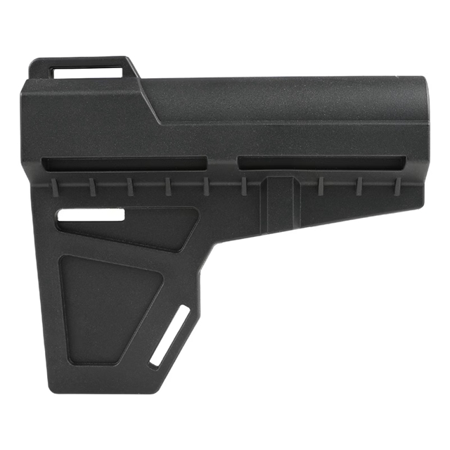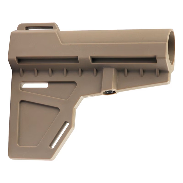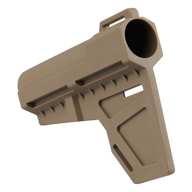 AR-15ピストルに対応したKAK industriesタイプのピストルスタビライザー。 スタビライザーを取り付けることで射撃の安定化を図ることが可能となっており、片手での射撃も可能となります。 下部に設けられたフィンは射撃時に前腕部を安定した位置でキープする補助機能があります。 チークレストも設けられているため、より精密な射撃が可能となります。