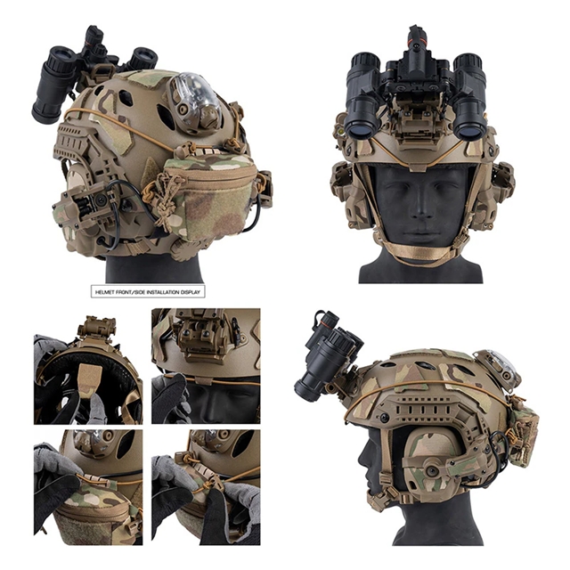 ナイトビジョン用バッテリーボックスや小型カメラ、タクティカルライトなどの収納に適しており、ヘルメット後部のスペースを有効活用できます。