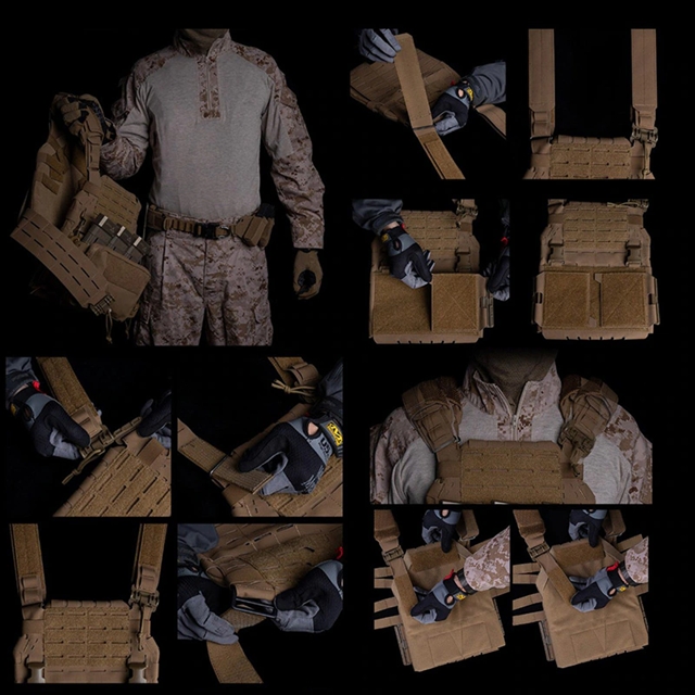 10×12インチまたはSAPI Mサイズ相当のダミープレートに対応。内部ベルクロによりプレート厚に応じた固定・調整が可能です。