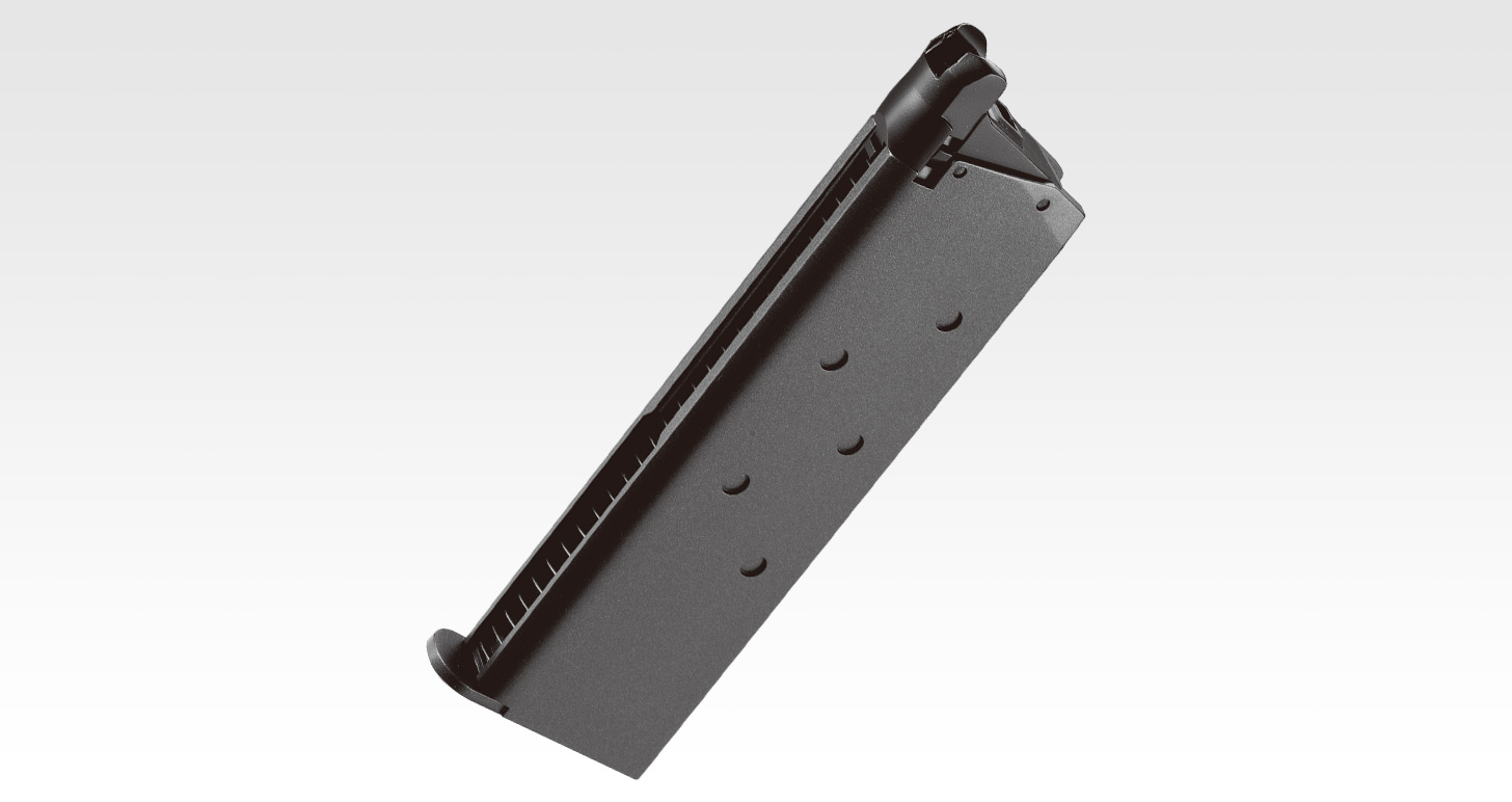 装弾数26発、薄型ながら冷えに強いダイカスト製のマガジンが付属しています。